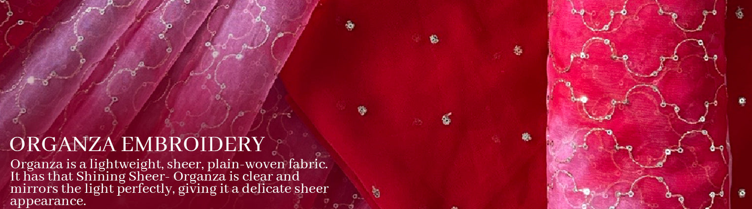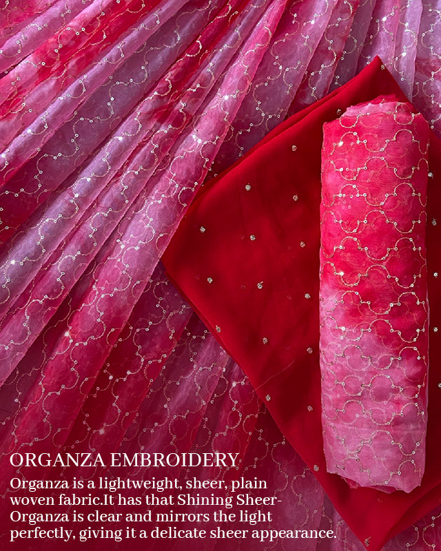 Gold Sequins Small Motif Embroidery Work On Red Organza F...