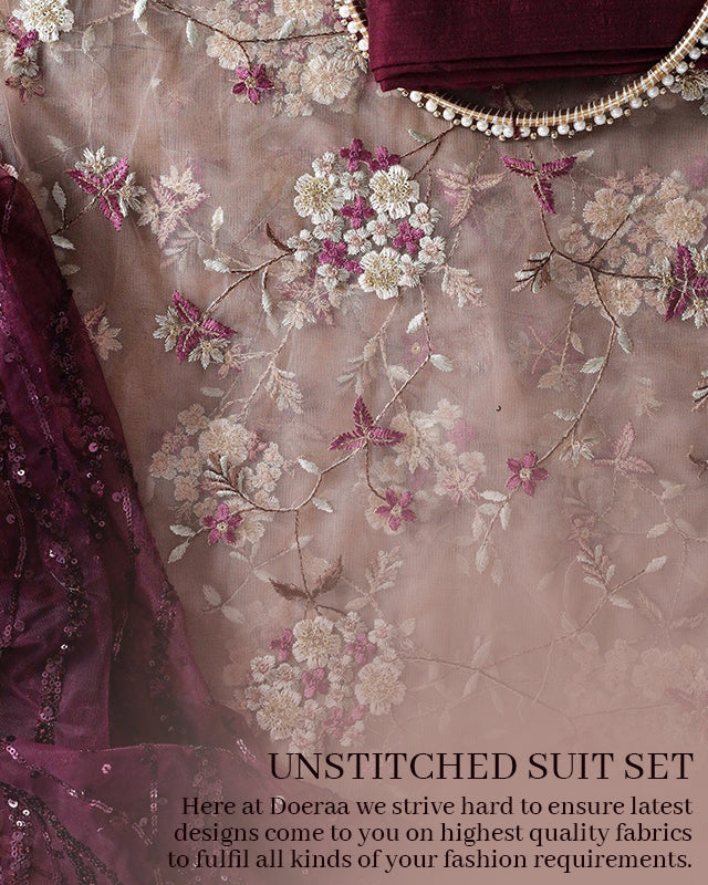 Black Floral Embroidery On Lilac Pure Mul Cotton Unstitch...